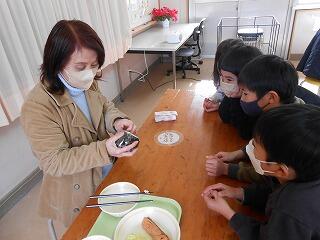 宮水小の栄養教諭、長沼先生からたくさんのお話をしていただきました。