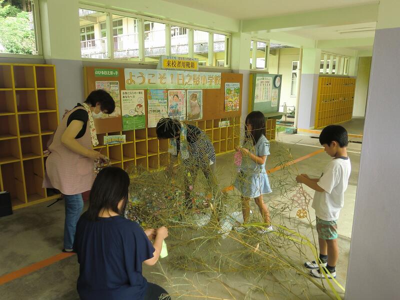 1,2年生と一緒に七夕の飾り付けをしてくださいました。