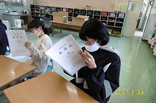 卒業式を翌日に控えた3月24日(水)、6年生にとって最後の「あゆみ」(修了証)が担任から手渡されました。