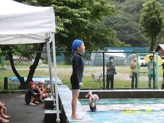 目標を言った後、達成目指しがんばる3・4年生。最高100m泳ぎ切った児童もいました。