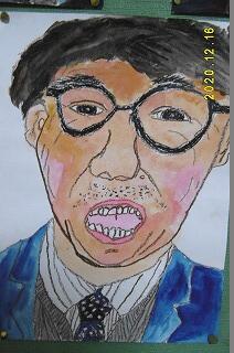 その記事に掲載されていた、「校長先生の似顔絵」、実は、1・2年生全員が取り組んでいたのです。