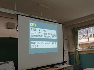 本日の研修のメインは、午前中の校長先生によるコンプライアンス研修でした。