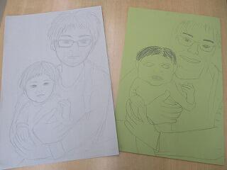 先生の作品です。どんな作品に仕上がるのでしょうか。絵文字:三人