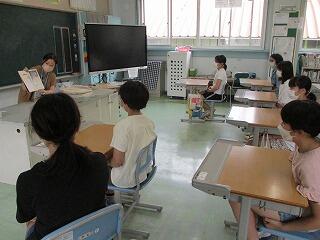 今月の朝の読み聞かせは、各学級に分かれて行われました。