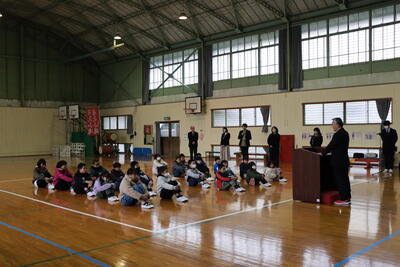 最後に、冬休みの生活について、元気に健康に過ごすためには「規則正しい生活」「早寝・早起き・朝ご飯」が大事であることとプラスして「食事・運動・睡眠」特に、運動することの大切さについてもお話がありました。また、人のことも考えた「咳エチケット」についも子ども達にわかりやすくお話をしていただきました。