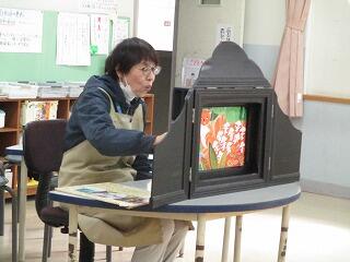 今日の昼休みは、図書館推進員の先生に紙芝居をしていただきました。