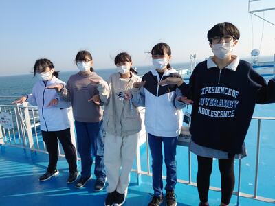 修学旅行最初の訪問先は、阿蘇防災ミュージアムでした。東海大学跡地や、阿蘇大橋崩落現場を見学しました。