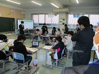 Robo Blocksでプログラミングを行っていた5・6年生。