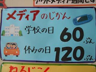 学校では、メディア利用時間と寝る時刻を、このように勧めています。