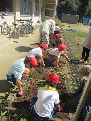 学校で育てたさつまいもをたくさん収穫することができました。巨大なものもあり、子ども達から歓声があがりました。