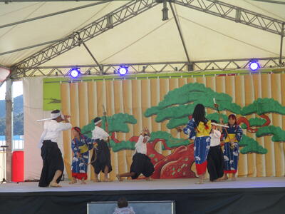 5,6年生が青少年伝統芸能発表に参加し、「追川団七踊り」を披露しました。
