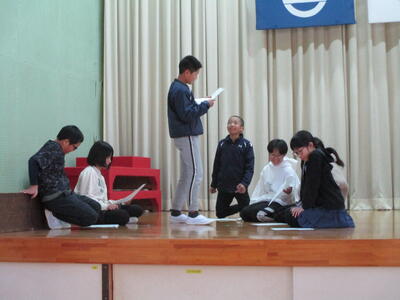 3,4年生は劇の練習をしていました。
