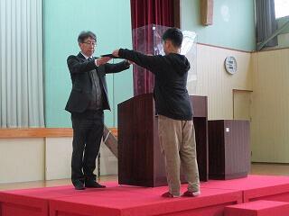 学習のまとめということで、本校の事務室の先生、落合先生にお話をしていただきました。