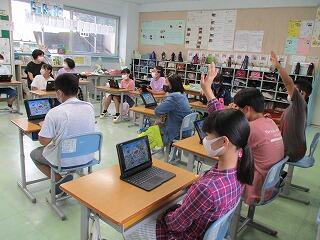発表する際に、子どもが必要に応じて資料を拡大しながら行う。