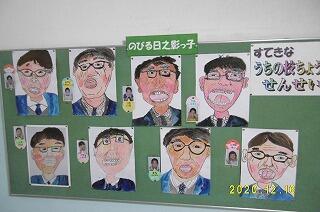 その記事に掲載されていた、「校長先生の似顔絵」、実は、1・2年生全員が取り組んでいたのです。