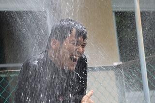 滝のようなシャワーでしっかり汗を流し、コロナ感染予防・・・。