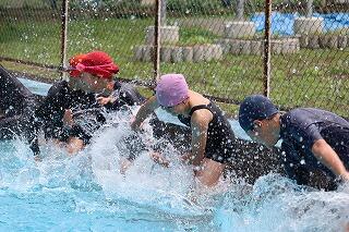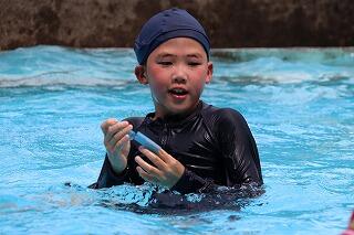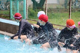 と叫びたい気持ちを抑えつつプール開きに臨んだ子どもたち。