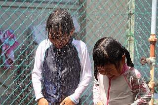 修行僧のようにシャワーに打たれる子どもたち・・・。