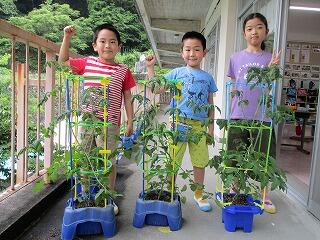 今日の2年生。ミニトマト、こんなに大きくなりました絵文字:重要
