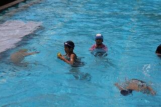 水慣れで、みんな一緒にプールを1周歩きます。汗・焦る