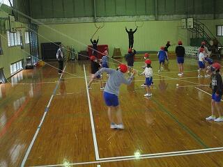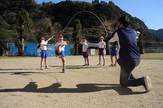 ダブルダッチにチャレンジ中の3・4年生の姿がありました。にっこり了解