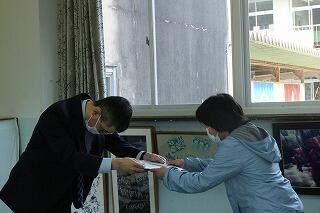 本校の5年生に委嘱状やこども記者の名刺が手渡されました。