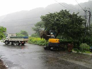 激しい雨がたたきつける中の作業に頭が下がりました。