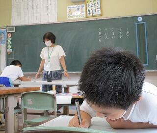2年生!!新しく赴任された先生と漢字の書き取りを頑張っていました。