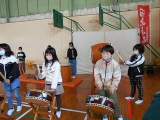 3・4年生が楽しそうに和太鼓を叩いていました。