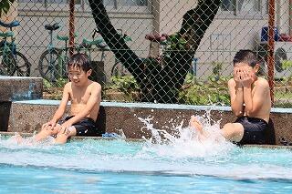 と叫びたい気持ちを抑えつつプール開きに臨んだ子どもたち。