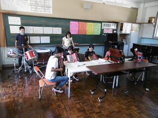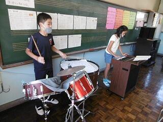 今回は、合奏曲「若い広場」の練習の様子です。ただ、音楽の時間ではなく、子どもたちが自主的に行っている昼休みの様子です。