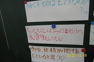 単元名「もののとけ方」です。写真(上)のような導入をした後、まずは、学習問題づくりにチャレンジです。