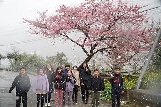 3年生が、昼休みに緋寒桜を拾って届けてくれました絵文字:ハート