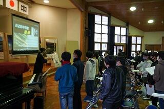授業の中では、中学校の校歌1番の歌唱指導を受けました。