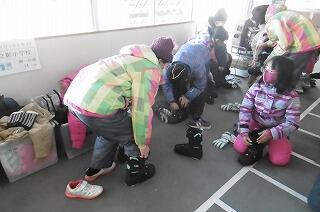 【すぐスキーウェアに着替えようとしますが・・・。初めての子ばかりで時間が・・・】