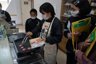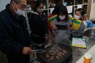 焼いた後のお肉も、見た目やにおい、味を比べました。あまりのおいしさに自然と笑顔がこぼれていました。