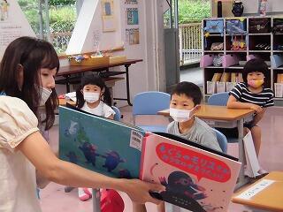 素敵な絵本の読み聞かせの後は、次が外国語のテストと聞かれて、流暢な英語でお話をして下さったとか・・・。