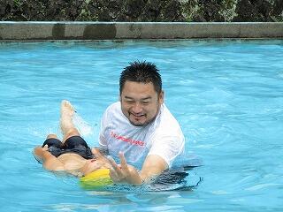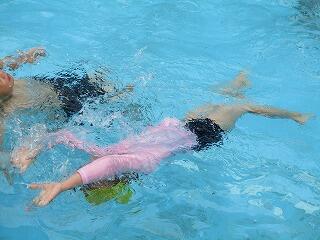 沈む感覚をつかんだら、次は背泳ぎで浮く練習です。