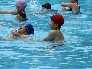 体育振興授業の一環として延岡の中学校から体育振興員の先生が来てくださって、3・4年生の水泳の授業が行われました。