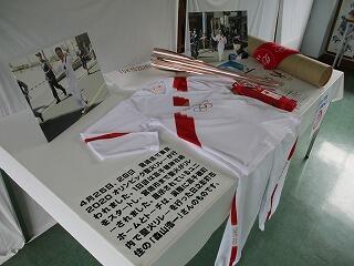 展示されているトーチとユニフォームは、実際に高千穂町内で聖火リレーを行った日之影町在住の「森山浩一さん」からお借りしたものです。