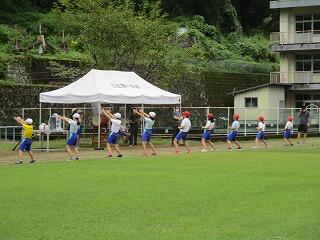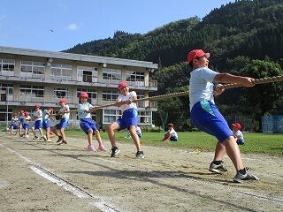 綱引きは密を避けるため、上学年、下学年に分かれて行います。