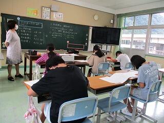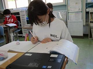 6年生は、新しく赴任してこられた先生と、円の面積のテストへ向けて黙々と問題に取り組んでいました。