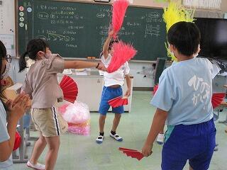 代々伝わる大きなうちわを片手になやむこどもたち・・・。