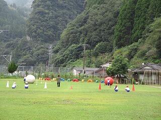 1・2年生は、初めて大玉転がしの練習を行いました。