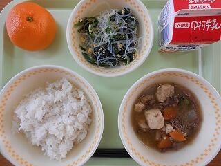 奄美大島ではご飯の上にパパイヤの漬け物が乗っていますが、給食では福神漬け、山川漬けが使われていました