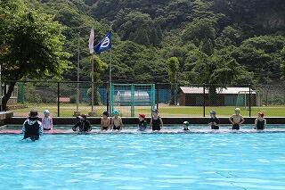 ソーシャルディスタンスを保ちながら水泳学習1日目を終えました。
