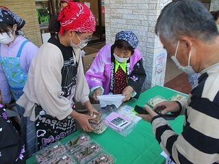 「こばるの里」について学習させていただいたので、6年生が、今日は朝市のお手伝いを行いました。