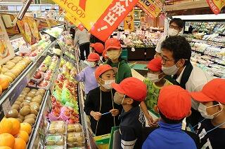 4年生に見送ってもらって3年生が到着したのは、Aコープ高千穂店。