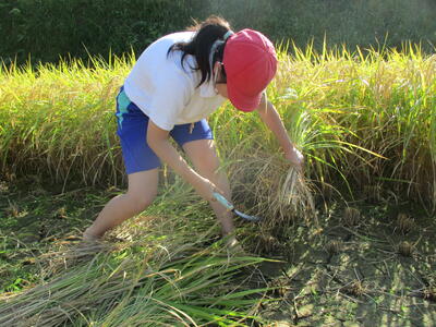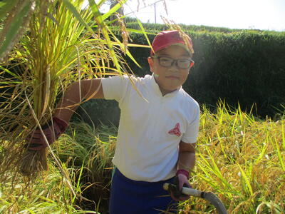 5,6年生9名のうち稲刈り初体験者は、たった1名。