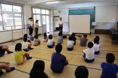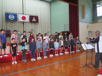 9月を振り返り、運動会では一人一人がよくがんばり、地域の方々にも喜んでいただいた。10月は「学校と地域をつなぐ音楽祭」に向け、みんなでがんばりましょう!とお話がありました。また、「自分の目標」をもって日々過ごすことの大切さについてもお話がありました。